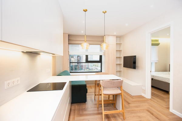 Арт. 128554877 НОВАЯ ДИЗАЙНЕРСКАЯ 2-х комнатная квартира в ЖК Левел Причальный на Шелепихинской набережной. С панорамных окон квартиры открывается шикарный вид на мегаполис и набережную Москва-реки.