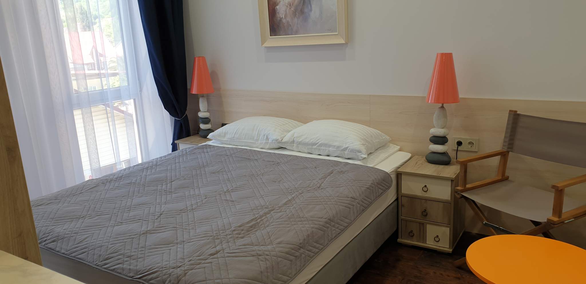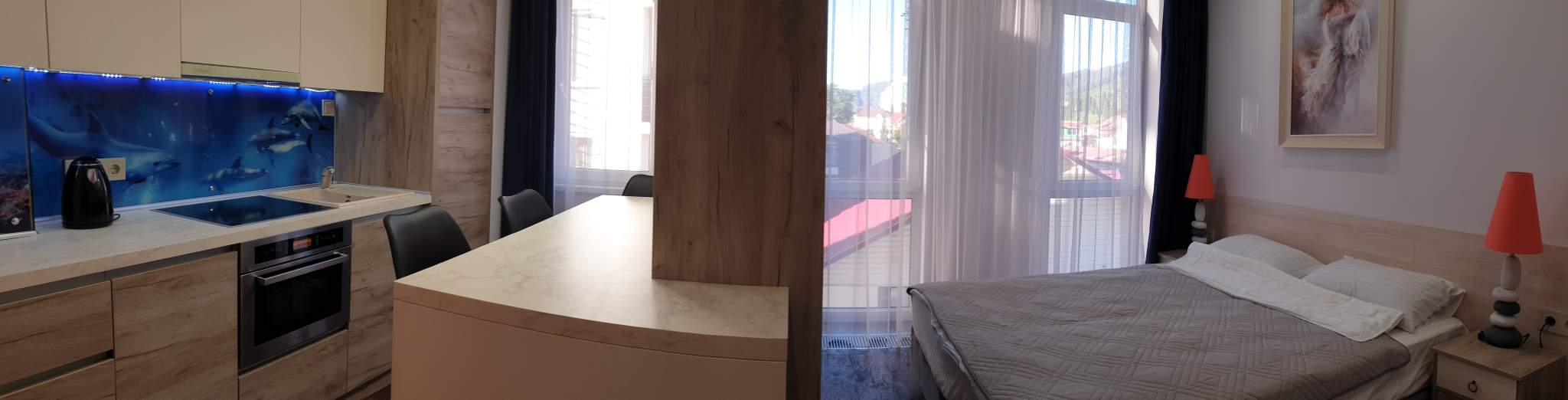 Сдам квартиру-студию в Сочи Адлер р-н на длительный срок рядом с морем (300м). Для женщины или семьи (дети от 7 лет). Без посредников. Объявление от собственника жилья, хозяина. Площадь – 26м2. Цена – 35000 руб/мес. Залог – 25000 руб. Коммунальные платежи оплачиваются отдельно. Сдаю квартиру с мебелью и всем необходимым для комфортного проживания. Для размещения 2 места – двуспальная кровать, с возможностью разделения, плюс 2 места - двухъярусная кровать-трансформер (2 полноценных спальных места, для детей или гостей), всего 4 места. Ремонт выполнен по авторскому дизайнерскому проекту. Квартира полностью оборудована мебелью и бытовой техникой (в кухонной зоне техника встроенная), холодильник, кондиционер, стиральная машина, посудомоечная машина, телевизор, духовой шкаф с функцией микроволновки, варочная панель индукционная - 2, электрическая - 2, вытяжка. Имеется посуда и постельные принадлежности. Студия находится на 4-м этаже 5-этажного дома. Обеспечение безопасности: видеонаблюдение, домофон, железная дверь. Рядом (200м) в Курортном городке имеется все, необходимое для досуга детей и взрослых (парковая зона, детские площадки, дельфинарий, океанарий, боулинг, бассейн, столовые, кафе, рестораны, магазины, бювет с минеральной водой). Стоянка для автомобиля не предусмотрена, но недалеко платная (100м). Курение и нахождение животных в квартире запрещены. Школа – проезд на автобусе (маршрутке) или на личном автомобиле. Остановка автобуса 200м. [#8010967#]
