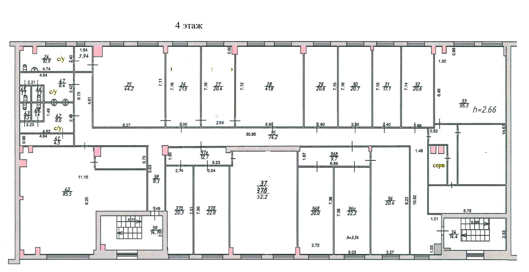 Прямая аренда 23 кабинета на 4 этаже, без комиссий от собственника. В стоимость аренды включены:физическая охрана здания, пользование парковкой, ежедневная уборка мест общего пользования. Есть отдельная комната для серверной (установлен сплит), заведена оптика от оператора связи скорость до 10 Гбит/с, установлен шкаф 42U с разводкой сети по кабинетам, в каждом кабинете сеть рассчитана от 6 до 20 раб мест не требуется доп вложений на организацию сети. Кабинеты: каб. дир. + отдельный с/у + скуд на вход, приемная, переговорная, кладовки, архивные и т.д. Во всех комнатах установлены: светодиодное освещение, сплит системы, пожарная система оповещения и т.д. См. планировку. Инфраструктура рядом: автобусная остановка, аптека, супермаркет и т.д. Скидка 50% на первый платеж. [#7962361#]