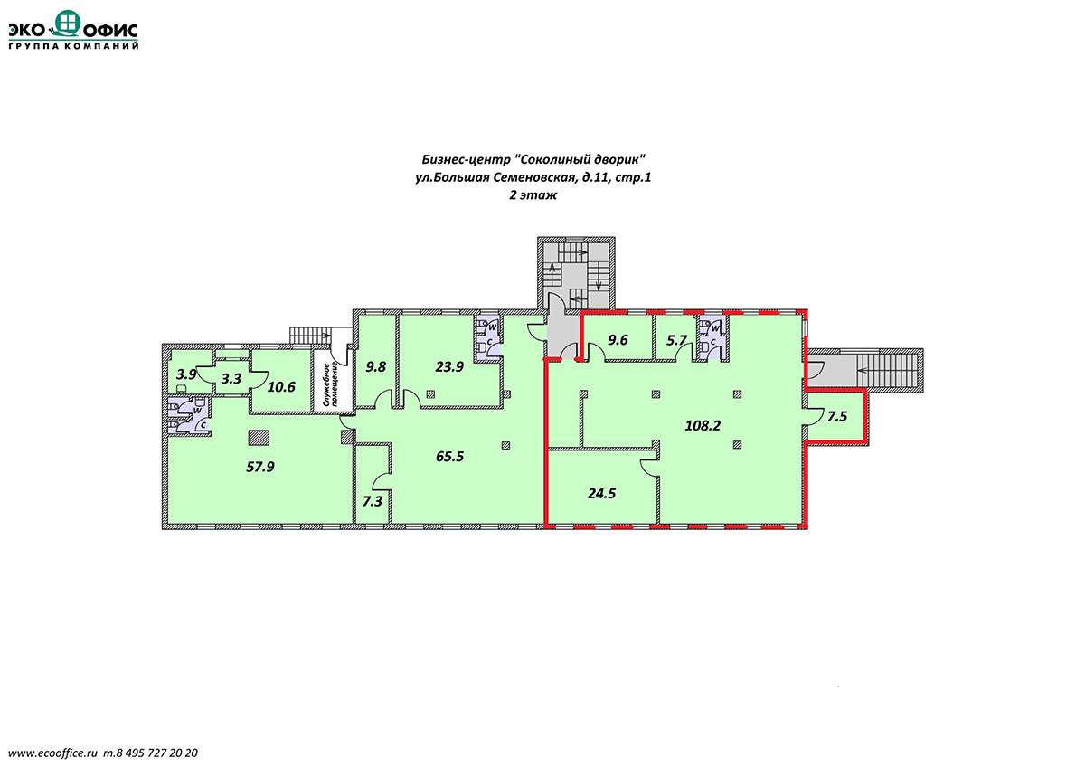 Мы - собственник коммерческой недвижимости ГК «ЭКООФИС»! Сдаётся офис 159 кв. м в БП «Соколиный дворик», 2 минуты от м. Электрозаводская. Помещение с отделкой расположено на 2-3 этажах, отдельный вход с проходной. Отделка и характеристики: пол - линолеум, стены окрашены, потолок - подвесной. Планировка: кабинеты 108,2 кв. м / 24,5 кв. м / 9,6 кв. м / 5,7 кв. м, холл/ресепшен, кухня, с/у, серверная 7,5 кв.м. Высота потолков - 2,5 м. Аренда: 270 000 руб. /мес. , включая НДС и эксплуатационные расходы. Инфраструктура комплекса: тренажёрный зал и бассейн, кафе и детская игровая комната, конференц-зал и переговорные, комфортная зона отдыха с приватными диванными уголками. [#8003615#]