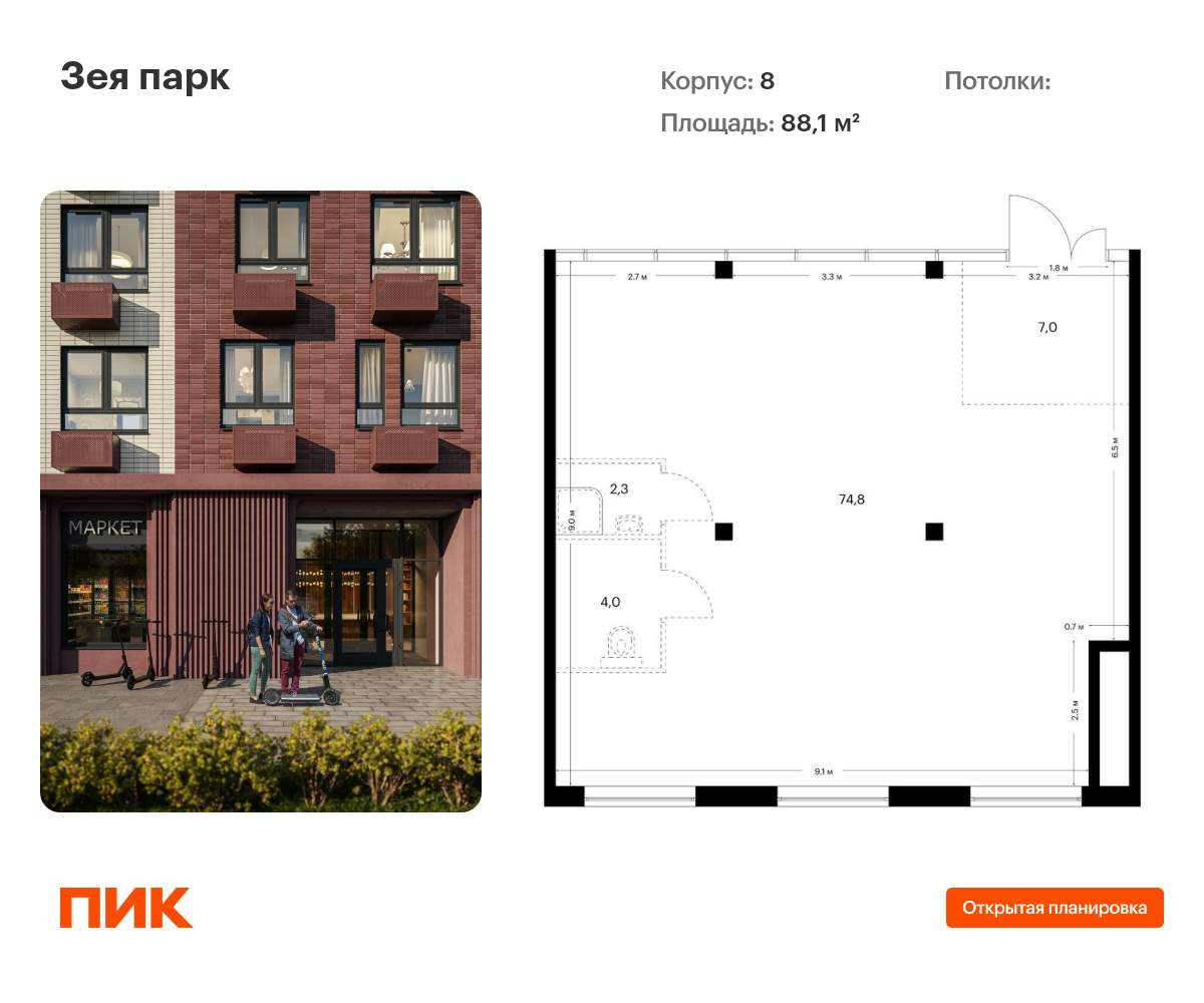 Продаётся нежилое помещение свободного назначения в новом жилом районе Зея парк от ПИК. Открытая планировка, витринное остекление, удобный вход на уровне земли. Помещение (номер на площадке: №4) расположено по адресу: Россия, Амурская область, г. Благовещенск, квартал 800, Корпус 8. Ввод в эксплуатацию 2 квартал 2026. Продажа напрямую от застройщика. Преимущества помещения: - Высокий трафик и проходимость - Безбарьерная среда: никаких лишних порогов, лестниц и крутых пандусов - Отдельный вход - Витринное остекление - Высокие потолки - Универсальное помещение, мы не ограничиваем вас в выборе типа деятельности: помещения одинаково хорошо подойдут под салон красоты, химчистку или уютное кафе - Открытая планировка и возможность объединения помещений - Быстрая окупаемость бизнеса, обеспечена большим количеством жителей «Зея парк» - новый квартал со всем необходимым для комфортной жизни. До центра Благовещенска - 15 минут. Внутри «Зея парка» много места для тихих прогулок и активного отдыха. В каждом дворе будет парк с детскими и спортивными площадками. Рядом с домами пройдёт широкий пешеходный бульвар, где мы установим удобные скамейки и высадим кустарники и цветы и взрослые деревья. В квартиры и дворы сможет беспрепятственно проникать солнце благодаря переменной высоте корпусов - 9 и 16 этажей. В домах будут просторные и светлые подъезды с дизайнерской отделкой, витражным остеклением и двумя выходами на уровне земли: во двор и на улицу. В «Зея парке» можно выбрать планировку с кухней-гостиной, гардеробной или двумя санузлами. В квартирах большие окна, застеклённые балконы и лоджии - будет светло и уютно даже зимой. Все квартиры сдаются с предчистовой отделкой: самые грязные и шумные работы к моменту выдачи ключей уже закончатся. На первых этажах домов разместятся магазины, кафе и другие сервисы, а на подземных - индивидуальные кладовые. В 10-13 минутах пути на машине - парк Дружбы, аквапарк и ТРЦ «Острова». Рядом с жилым кварталом есть автобусная остановка, от которой можно добраться в любую часть города. [#8075553#]