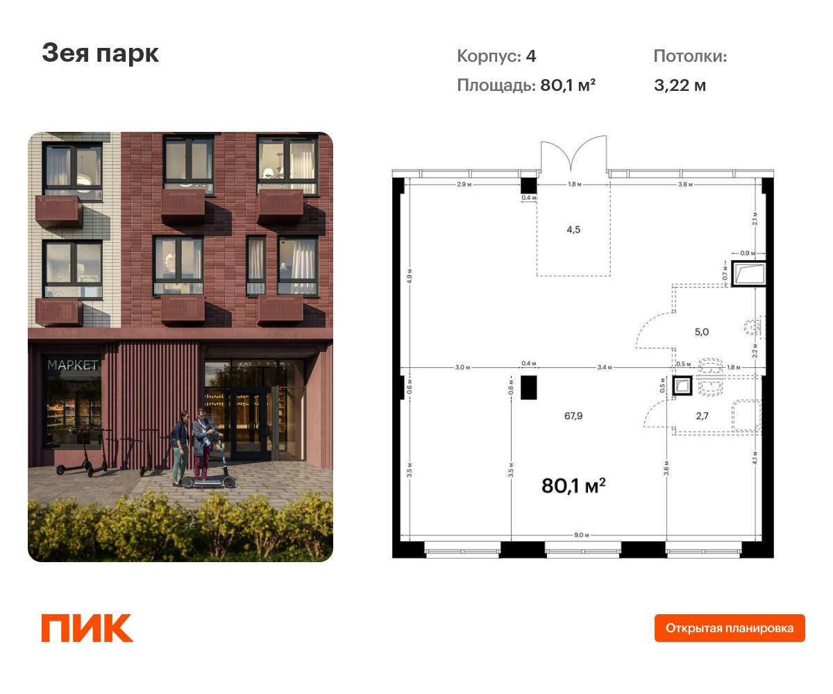 - Общая площадь 80.1 м²
