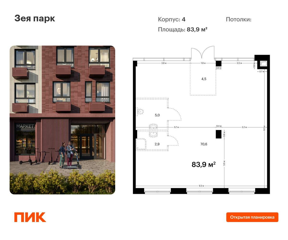 - Общая площадь 83.9 м²