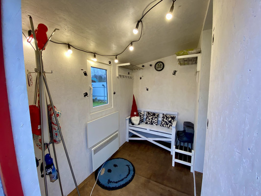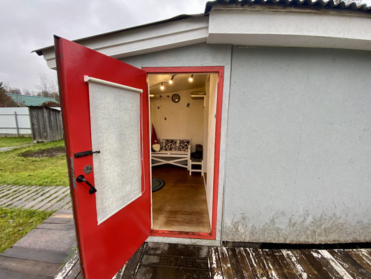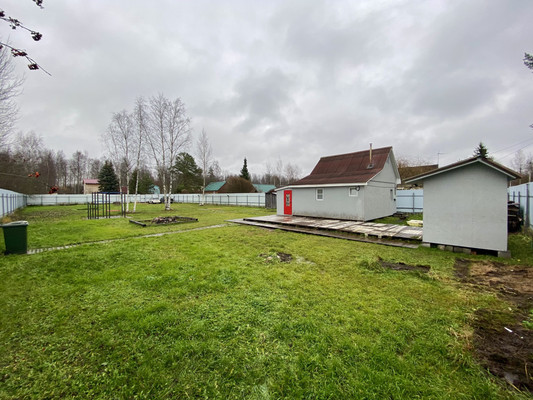 Участок ровный, выполнен ландшафтный дизайн в классическом стиле и окружен по периметру забором из металлического профнастила. На краю участка расположен небольшой и уютный дом с возможностью круглогодичного проживания. Эргономичная планировка с встроенной мебелью и техникой, а также наличие комнаты на чердаке позволит с комфортом разместиться семье из 3-4 человек. А еще на участке есть костровая чаша, детская и спортивная площадка, бытовка для хранения сухих дров и инвентаря, подсветка вдоль забора и парковка для автомобилей.