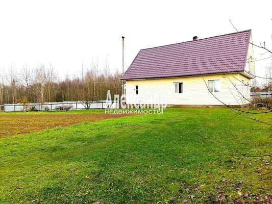Дом 2000 года постройки, для постоянного проживания, бревенчатый, утеплён и снаружи обшит сайдингом; на первом этаже расположены: кухня 12,7 кв.м., санузел с ванной, комнаты 12,4+17+10 кв.м., прихожая 14,5 кв.м., веранда 9,4 кв.м.; оборудована котельная с отоплением от твердотопливного котла, а также в кухне есть отличная печь; под домом подвал для хранения заготовок и консервации; на втором этаже чердачное помещение; фундамент ж/б ленточный; покрытие пола - половая доска, внутренняя отделка стен - обои; на второй этаж лестница; кровля - металлочерепица, окна - стеклопакеты; электричество 15 кВт (договор с Ленэнерго), канализация - септик, водопровод центральный. Газовая магистраль проходит по границе участка, заявка и документы на подключение газа к дому - в работе.