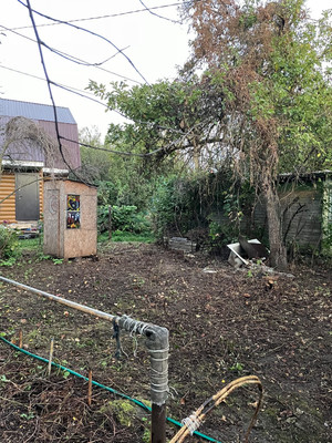 Участок полностью очищен, имеются плодоносящие деревья (6 яблонь)и кустарники.