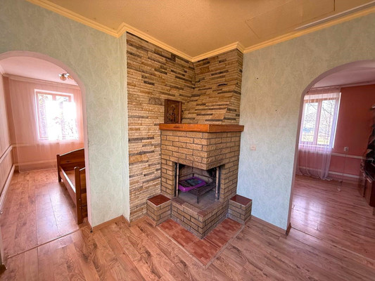 Подключено центральное водоснабжение, природный газ. Отопление от газового котла + камин. Установлены деревянные окна.