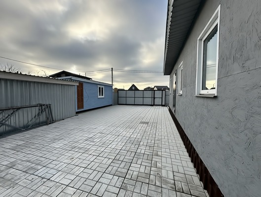 Благоустроенная въездная группа - откатные ворота и большая парковка выложенная тротуарной плиткой - на 2 автомобиля