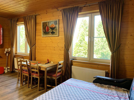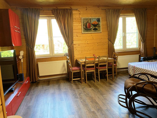 Утеплен с 3-м утеплителями, внутри деревянная отделка стен, снаружи - панели. На 1 этаже пластиковые стеклопакеты, на 2 этаже – деревянные, крыша – металлокерамика. На полу кварц-винил. Вокруг дома выполнен дренаж.