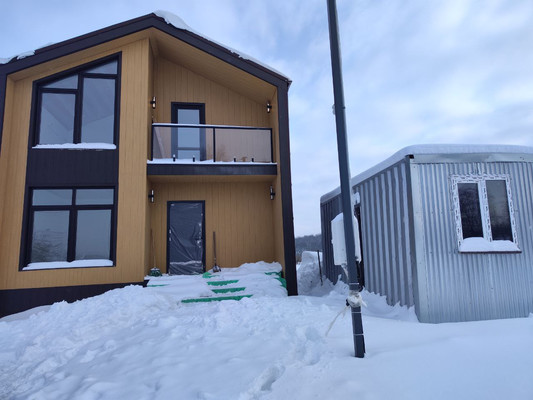 Характеристики домаТип: деревянный по Норвежской технологии.Общая площадь — 133 кв. м, жилая — 124,7 кв. м.Габариты-7 × 9,5 мЭтажность —2 этажаКоличество комнат: 4Высота потолков: 2,6 м (1 этаж) / до 3,5 м (2 этаж)Все материалы обработаны огне- и биозащитой.Подходит для круглогодичного проживания.Конструкция и отделкаРемонт: Установлены трубы водоснабжения и канализации, подготовлены потолки, стены выровнены, загрунтованы и оштукатурены. Выровнены откосы и установлены окна. Электрическая проводка разведена по комнатам, установлены вводные автоматы.Фундамент и перекрытия: усиленная обвязка, сухая строганная доска, черновой пол из ОСБ 18 ммТёплый пол: технология «сухая стяжка» (ЦСП + отражающие ...