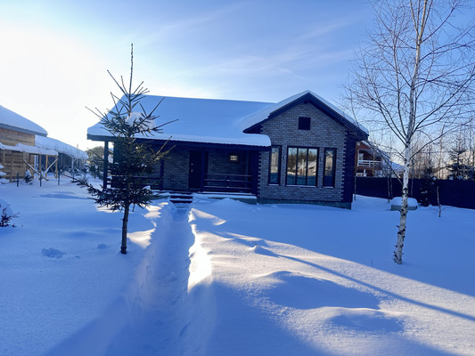 О доме:— Площадь 130 кв. м.— Дом новый: 2025 года постройки.— Материал стен: Брус.— Подходит для круглогодичного проживания: двойное утепление стен.— Фундамент: ленточный.— Крыша: металлочерепица.— Внутренняя отделка дома: имитация бруса, пол – ламинат, окна ПВХ.— Внешняя отделка: фасадная плитка НАUВЕRК.