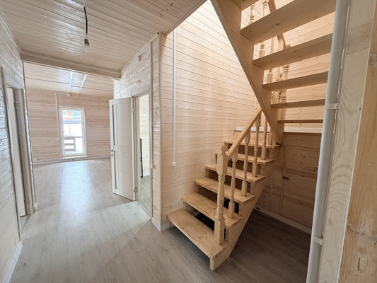 О доме:- Площадь 140кв. м.- Дом из бруса: Брус(100х150);- Полностью утеплен : стены 100 мм, пол и крыша 150 мм (минеральная вата)- Фундамент: ленточный;- Внутренняя отделка дома: имитация бруса. Пол – ламинат. Окна ПВХ (КБЕ двухкамерные)- Внешняя отделка дома: имитация бруса.