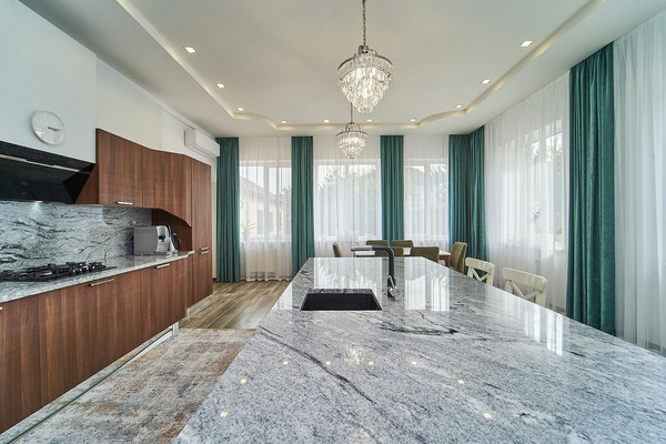 Арт. 95674123 Эксклюзивный шикарный дом в Европейском стиле Возле парка Галицкого кп «Вишневый сад». Все новое Стильное и красивое.Продуманная удобная планировка: на первом этаже просторная кухня/гостиная, кабинет, холл со вторым светом, котельная, щитовая и большая кладовая, ванная комната. На втором этаже просторный сан.узел, три спальни с гардеробными, одна со своим сан.узлом. Высота потолков в доме – 3,1 метра. В доме выполнен Ремонт из дорогостоящих материалов Европейских производителей (кухонный гарнитур и осветительные приборы в доме производства Италии, столешница, фартук кухни и острова выполнены из натурального камня – Индия. Сплит системы фирмы «General». Лестничные перила – художественная ковка мастера международного уровня. Двери из массива ясеня. По периметру первого этажа система тёплый пол. Дом очень светлый, просторный, Продуманный дизайн. Вся Мебель и Техника остаются Новым хозяевам.Земельный участок 9 соток с правильной эргономикой: Основной дом 280м2 в 2х этажах, гараж 71м2 на 3 машиноместа с въездной группой фирмы Херманн и два парковочных места. Перед фасадом дома разбит молодой виноградник. На заднем дворе расположены Гостевой дом 83,5м2 и Баня 23 м2, Зона барбекю с мангальным комплексом и беседкой для отдыха, небольшой пруд и современная зеленая зона с ландшафтным дизайном, есть место под Бассейн. Коммуникации все Центральные, На участке имеется автополив, при въезде автоматические ворота. Особого внимания заслуживает Гостевой дом, который можно использовать как для проживания так и для просторного тренажерного зала с биллиардной. Гостевой дом имеет автономное обеспечение, ванную комнату с сан. узлом, прихожую и гардеробную, Сауну с зоной отдыха.Удачное расположение дома в начале элитного малоэтажного микрорайона нашего Города- пос. Плодородный, возле дома остановка общественного транспорта, Комплекс Магазинов, Магнит, Магнит косметик, Пятерочка, Озон, кафе и фитнес центр, 2 новых Школы, 2 детских сада, все подъездные пути асфальт