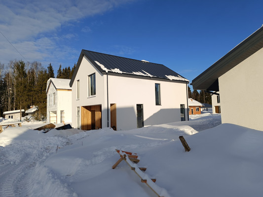 В доме объединенная кухня- гостиная 33 кв.мМастер- спальня Две детские комнатыКомната для гостейДва санузлаКотельнаяКладоваяСауна или хамамМинимум 2-3 зоныпод хранение личных вещей В доме все необходимые коммуникации:Газовое отоплениеВодопровод (поселковый)Канализация ( септик)Электричество 15 кВтЗабор Газон