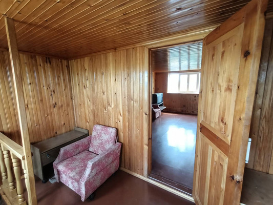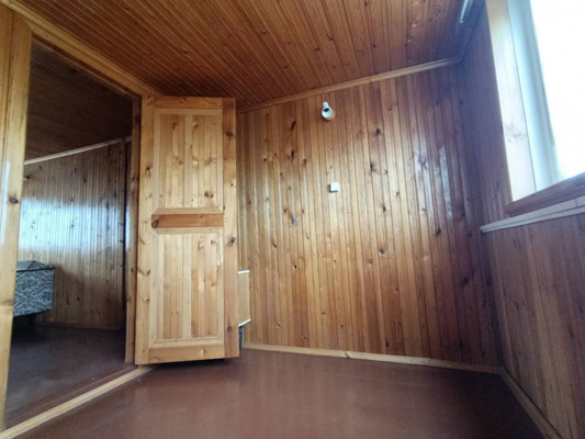 Стены возведены из пеноблока, внутренняя отделка выполнена вагонкой.