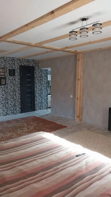 В доме 2 спальни 1(14.5 м и комната 16 м, санузел 3 м ) и кухня-гостиная(17.3 м)Выполнен ремонт. Вся мебель останется новому собственнику.