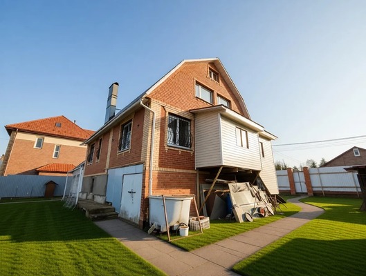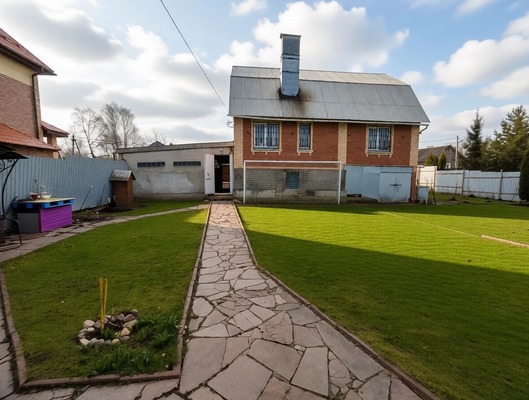 Дом из блоков, отделан кирпичом, на ленточном фундаменте глубиной 2 метра, шириной 0,8 м. Участок ровный, правильной формы.