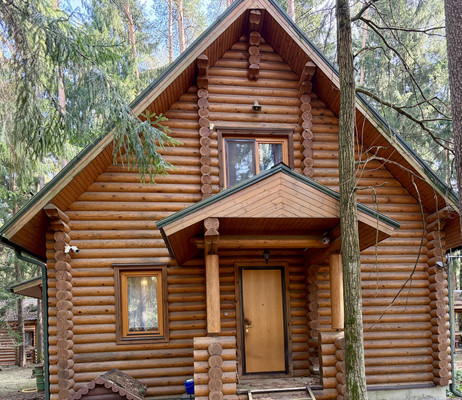 Просторный участок (43×62 м) — ровный, сухой, с вековыми соснами:Отдельная баня (40 кв. м) из того же бревна, что и дом: душевая и комната отдыха — релакс после активного дня.