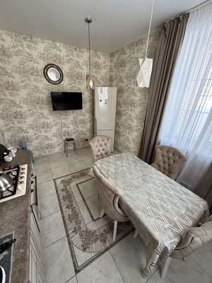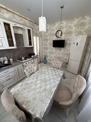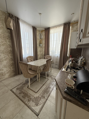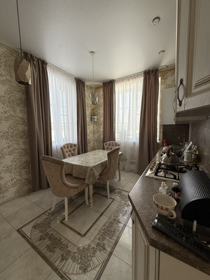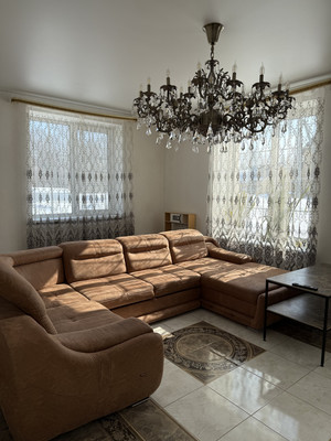 1 этаж - просторная гостиная, с прекрасным освещением. Светлая кухня с двумя большими окнами, установлен кухонный гарнитур. Так же на этаже котельная комната с сан узлом, просторный холл, и шкаф купе в нише коридора.Лестница на второй этаж с большим, красивым оконным проемом.2 этаж- три комнаты . Все комнаты со своим настроением и освещением. Очень уютные, солнечные. На этаже гардеробная комната и Большой сан узел в современном кафеле.Красивые люстры, высокие потолки, большие окна создают свою атмосферу.