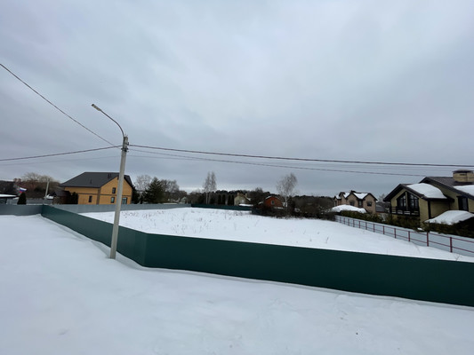 Дорога - асфальт, до участка примерно 25 метров - грунтовая дорога. Забор - металлический профиль по всему периметру участку,