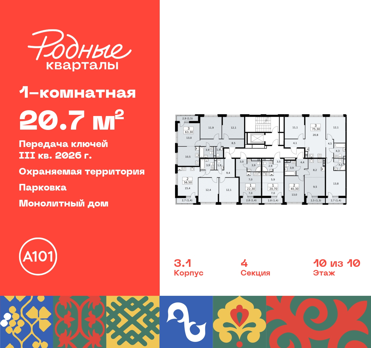 Продается 1-комн. квартира-студия от застройщика в ЖК "Родные кварталы" на 10 этаже. Квартира без отделки, после оформления собственности можно делать ремонт. Общая площадь: 20.7 кв.м., площадь гостиной 12.9 кв.м., из которых 7 кв.м. выделено под кухонную зону. Все окна выходят на одну сторону. В квартире один балкон, один совмещенный санузел. Высота потолков 2.95 м. Дом монолитный, черырехподъездный, высотой 10 этажей. Квартира находится в 4-й секции в корпусе 3.1. На этаже 6 квартир. В подъезде 1 грузовой лифт. Начало строительства - 2 квартал 2024 года. Окончание строительства - 3 квартал 2026 года. Оформление сделки по договору долевого участия. Артикул квартиры по базе застройщика 96К-3.1-186. ПРЕДЛОЖЕНИЯ ОТ ЗАСТРОЙЩИКА В ОКТЯБРЕ 2025: Ипотека от 13,9 % для всех! На весь срок. "Семейная ипотека" вернулась. Ставка от 3,5 % на весь срок! Без удорожания! Выгодное ипотечное комбо: Ипотека от 2200 р./мес. и от 6 % после рождения ребёнка! Ипотека для всех "Держи пять!" - ставка 5 % на 2 года! *более подробную информацию по скидкам и акциям уточняйте в отделе продаж Новый жилой комплекс "Родные кварталы" строится в уютной, экологически благополучной локации на юго-западе столицы. В ближайшем окружении – ухоженные малоэтажные посёлки и живописный Ульяновский лесопарк. Благодаря этому из окон откроются вдохновляющие виды, которые не исчезнут со временем за фасадами многоэтажек. Через весь район пройдёт главный бульвар, который свяжет набережную, жилые кварталы и площади в единое дружелюбное пространство, органично наполненное узнаваемыми элементами культурных традиций разных народов. В жилом комплексе создаются условия для комфортного отдыха и занятий спортом всех жителей. Здесь можно прогуляться и отдохнуть в лесопарке на берегу ручья, позаниматься на тренажёрах под открытым небом и спортивных площадках. Для малышей построят игровые комплексы, развивающие силу, координацию и ловкость. Всего в жилом комплексе будет оборудовано 6 га территории для спокойного отдыха и около 9 га — для активного. Подъезды в домах освещены в любое время суток, входы и вестибюль хорошо просматриваются с улицы. Витражное остекление обеспечивает приток естественного света днём, а вечером зажигаются светильники. В отделке домов используется сочетание вентилируемого фасада с облицовкой из фибробетонной плитки и штукатуркой. Комфортная высота домов соразмерна человеку и в среднем составляет 10 этажей. Все дома обеспечены собственными подземными паркингами. В них размещаются машино-места и кладовые. В паркинг или кладовую можно спуститься на лифте или по лестнице. В комплексе появятся бытовые сервисы, магазины, аптеки и другие торгово-бытовые объекты. В жилом районе «Родные кварталы» будут построены: - образовательный центр: школа на 1300 учеников и детский сад на 250 малышей, - два детских сада на 200 мест каждый (один из них сдаётся в 1-й очереди). В транспортной доступности уже работают: - школа № 41 и детский сад — по Боровскому шоссе, - школа № 2057 и детский сад — на запад от района, в дер. Марушкино. ЖК «Родные кварталы» строится в Новомосковском округе столицы, в 15 минутах на автомобиле от аэропорта «Внуково». Район обеспечен удобными выездами на три крупные современные автотрассы. Здесь уже работает и активно развивается система наземного общественного транспорта, включая междугородние рейсы. Инте