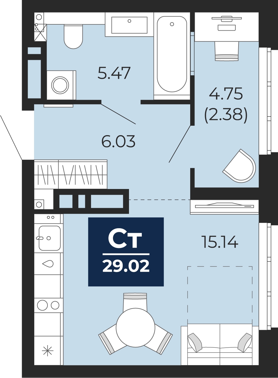 1-комн. квартира-студия в ЖК "Беринг" на 7 этаже. Квартира без отделки, новый владелец может сделать ремонт по своему проекту. Общая площадь: 29.02 кв.м., площадь гостиной 15.14 кв.м., из которых 5 кв.м. выделено под кухонную зону. Все окна выходят на одну сторону. В квартире один совмещенный санузел. Высота потолков 2.75 м. Дом монолитный, многоподъездный, переменной этажности, от 9 до 21 этажей. Квартира находится в 74.5-й секции высотой 21 этаж в корпусе ГП-74. На этаже 7 квартир. В подъезде 1 пассажирский и 1 грузовой лифт. Окончание строительства - 4 квартал 2025 года. Оформление сделки по договору долевого участия. Подобно знаменитому исследователю, мы чувствуем себя первооткрывателями этой локации. Хотим показать новую суть места, сформировать для вас жизненный опыт, которого ещё не было. Беринг — район зелёного цвета. Беринг — район, который откроется вам с другой стороны. Впечатлит новым уровнем комфорта и качеством жизни. Беринг — открытие на карте города. Первый квартал расположен в районе Тура, в границах улиц: Камчатская – Западносибирская – Энтузиастов. Вокруг уже есть всё для того, чтобы ежедневная рутина была лишь частью жизни и не доставляла дискомфорта. Школы и детские сады, магазины и аптеки, поликлиника, места для семейного отдыха, пеших и велопрогулок, и даже рыбалки. Масштабное озеленение дворов — визитная карточка ЭНКО и ваш оазис спокойствия, чтобы отвлечься от повседневности. Раскидистые деревья, кустарники, травы и цветы — осталось остановиться, вдохнуть и расслабиться, глядя на эту природную красоту. Стилистика подъездов продолжает концепцию Беринга, вдохновлённого Камчаткой: сдержанный, но при этом впечатляющий дизайн соседствует с удобством и функциональностью. (AQID02315451)