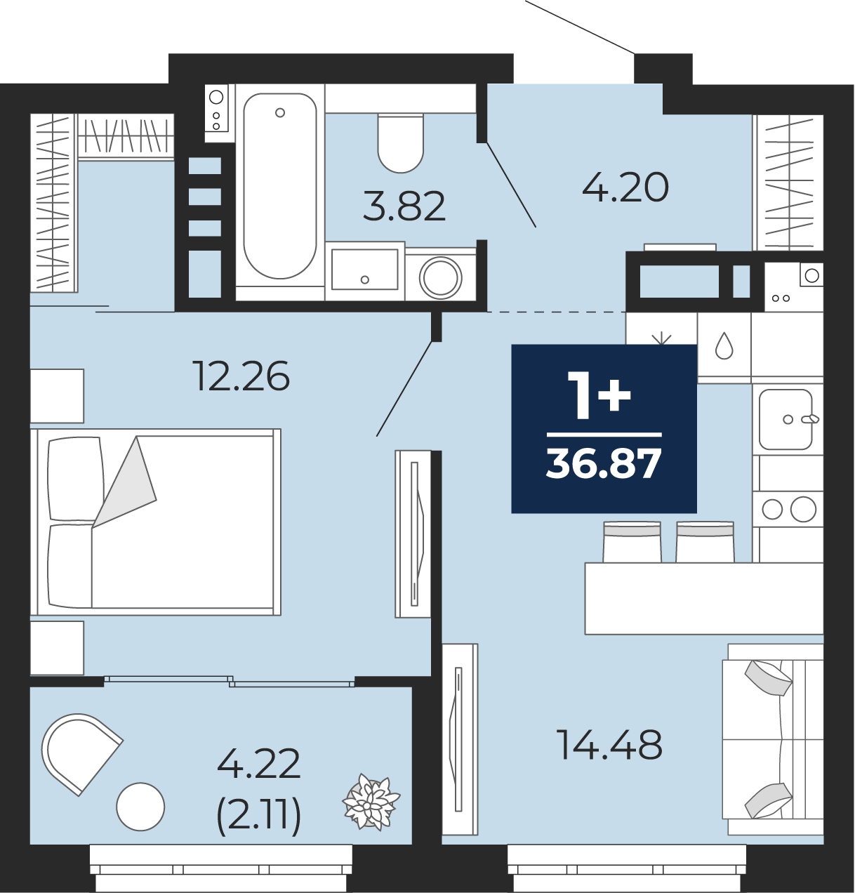 - Общая площадь 36.87 м²