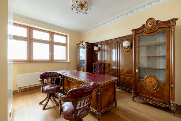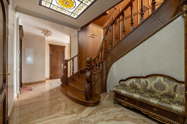 В пентхаусе сделан ремонт в классическом стиле из высококачественных материалов: на стенах венецианская штукатурка, полы из массива дуба, мрамор. Мебель Grili, люстры Renzo Del Ventisette, техника Küppersbusch. В каждой комнате установлен кондиционер.