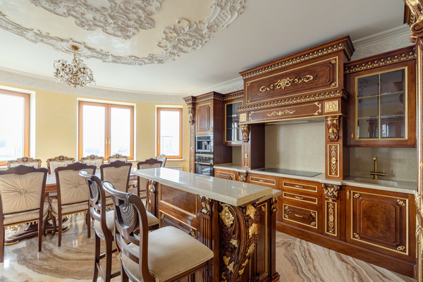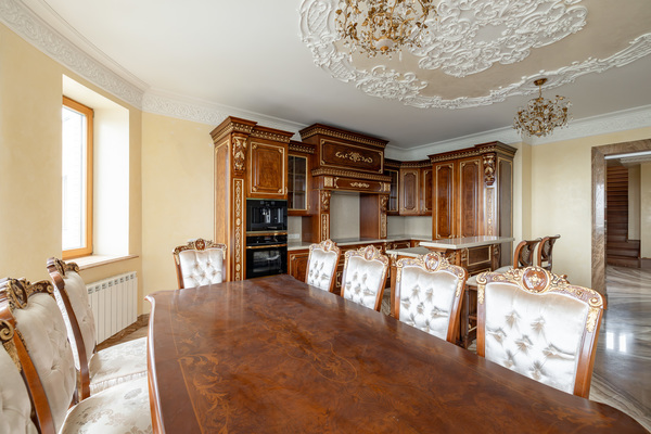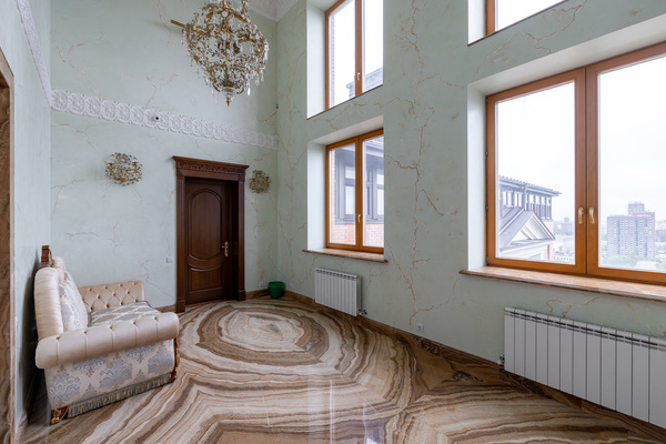 В пентхаусе сделан ремонт в классическом стиле из высококачественных материалов: на стенах венецианская
