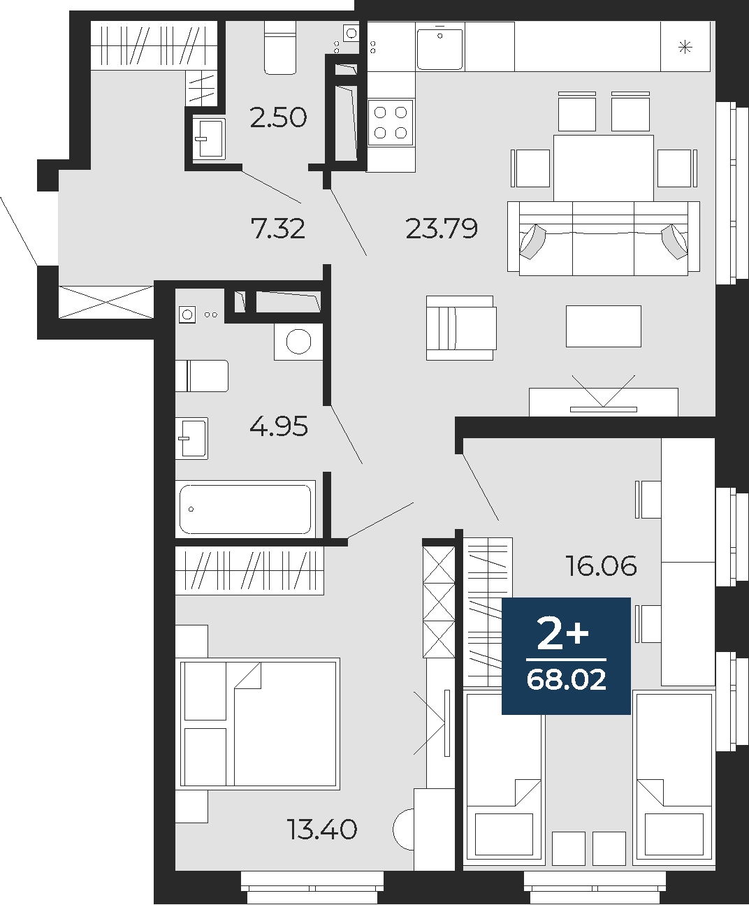 Продается двухкомнатная квартира с предчистовой отделкой в ЖК "Прео" на 15 этаже. Общая площадь: 68.02 кв.м., жилая: 29.46 кв.м., площадь просторной кухни-столовой: 23.79 кв.м. Угловая квартира, идеально подойдет любителям тишины и панорамных видов. В квартире один совмещенный и один раздельный санузел. Высота потолков 2.7 м. Квартира находится в корпусе 203. Дом монолитный, одноподъездный, высотой 24 этажа. На этаже 14 квартир. В подъезде 2 грузовых лифта. Строительство завершено, дом сдан в 4 квартале 2024 года. Оформление сделки по договору купли-продажи. Преображенский — один из самых привлекательных районов для жизни! Это полностью самостоятельный жилой район с точки зрения инфраструктуры. Преображенский находится между Московским и Червишевским трактами в квартале улиц Закалужская — Вьюжная — Александра Протозанова. Не нужно ждать, когда появится инфраструктура — переезжайте на всё готовое. Вблизи расположены действующие школа и детский сад. В этом году откроется еще один сад, а в следующем году — школа. По соседству с Преображенским запланировано строительство городского парка «Комарово» площадью 38 гектар. За 10 минут можно доехать на автомобиле до крупных ТРЦ: «Лента», «Кристалл», «Леруа Мерлен», «Метро» и «Ашан». С 2018 года в районе открыт Соседский центр — пространство, созданное для формирования добрососедской среды, совместного досуга, общения и реализации соседских инициатив. Здесь проходят встречи соседей, а также сами жители района организовывают мероприятия. Организатором такого события может стать любой желающий. В квартирах выполнена качественная предчистовая отделка. Гладкие стены с финишным выравниванием по маякам. Ровный потолок для установки натяжного потолка. Установлены пятикамерные окна с двойным стеклопакетом (3 стекла). Дизайнерские холлы с видеонаблюдением, безбарьерным и прозрачным входом – всегда светло и спокойно. На первом этаже есть просторные колясочные, где все жители могут оставлять свои коляски и велосипеды. В Преображенском есть всё, что нужно для активного отдыха и занятий спортом. Мы сделали большое футбольное поле с безопасным покрытием. Также установили хоккейный корт, который оборудован по всем необходимым стандартам. Во дворах можно делать упражнения на специальных площадках с турниками. Весь район мы обустроили велодорожками, которые связаны в единый маршрут. У нас есть сухие фонтаны, бьющие из земли, деревья, веревки, сетки, скалодром, газон, песок и резинка — осталось просто дать своему ребенку право на свободную игру. По-настоящему хорошие дворы — это те, которые дети предпочитают соцсетям и телевизору. Аккредитация в банках: ПАО «Газпромбанк», ПАО «Банк Уралсиб», ОАО «Альфа-Банк», ПАО Банк «ВТБ», «Сбербанк России» и других. (AQID02353808)