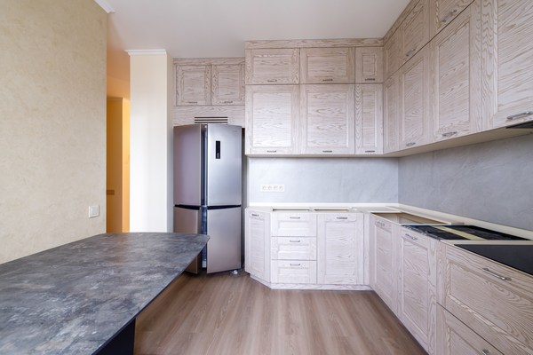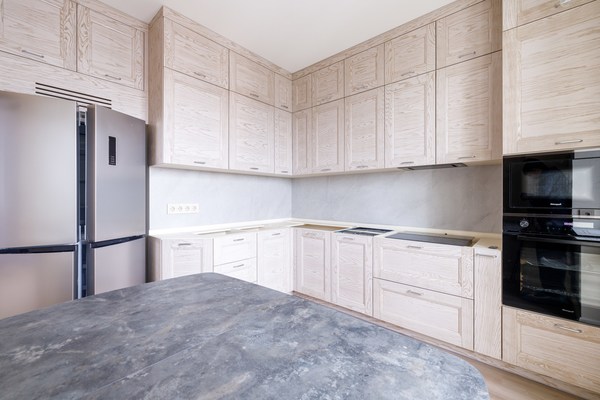Кухня практически готова. Бытовая техника встраиваемая Weisgauff (посудомоечная машина, варочная панель, микроволновка, духовой шкаф). Отдельно стоящий холодильник Weissgauff. Кухонный гарнитур - массив ясеня.