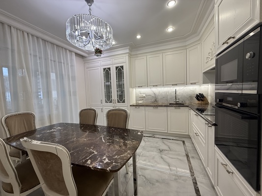 О квартире:: общая площадь 97,9 м, с учетом лоджии 108 метров, сделан дизайнерский ремонт с использованием качественных материалов, вся мебель сделана на заказ (Италия). В квартире была произведена замена всех стеклопакетов и радиаторов, полы: дубовый паркет, плитка, мраморная столешница на кухне и двух с/у, два бойлера (один на 100 литров, второй на 40 литров). Удобная и функциональная планировка: просторная кухня 12,8 м, гостиная 21 м, мастер спальня 15 кв.м. с ванной комнатой, детская 16 м, гардеробная комната с постирочным отсеком 6 м, санузел с душевой кабиной, утепленная лоджия. Вся встроенная мебель, техника, в гостиной диван остаются новым владельцам, поэтому можно сразу заехать и жить.