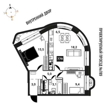 - Высота потолков, м 3.02