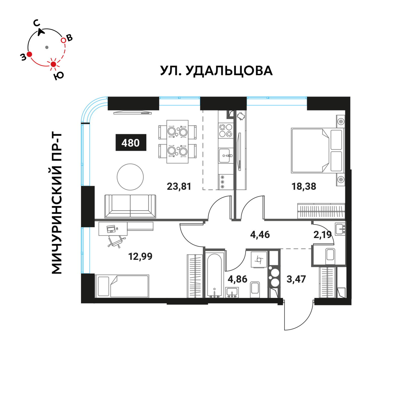 36 293 119 руб. 513 485 руб./м² Квартира 3-комн., 71 м2, 15/28 этаж, Мичуринский, влд. 45