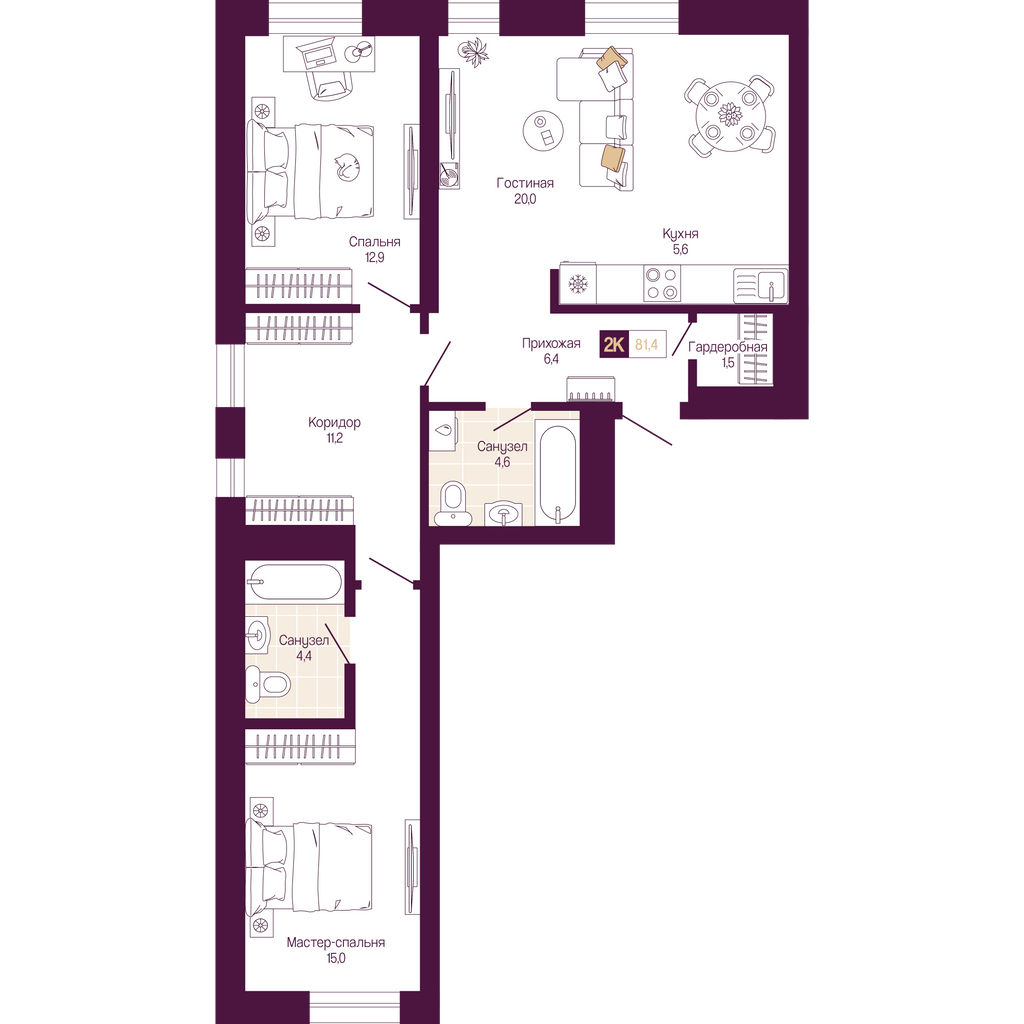Просторная 2-комн. квартира с предчистовой отделкой в ЖК "ИДЕЛЬ. Квартал на Сенной" на 2 этаже. Общая площадь: 81.4 кв.м., жилая: 27.9 кв.м., площадь просторной кухни-столовой: 25.6 кв.м. Квартира без проходных комнат, окна выходят нa три cтopoны дома. В квартире два совмещенных санузла. Высота потолков 3.0 м. Дом монолитный, двухподъездный, переменной этажности, от 12 до 25 этажей. Квартира находится в 6-й секции высотой 12 этажей в корпусе 2. На этаже 5 квартир. В подъезде 1 пассажирский и 1 грузовой лифт. Окончание строительства - 1 квартал 2028 года. Оформление сделки по договору долевого участия. «Идель. Квартал на Сенной» — это экосистема, где каждый элемент подчеркивает ваш статус и создает неповторимый комфорт. Перспективная локация. Квартал бизнес-класса строится рядом с пл. Сенной и примыкает к зоне будущего Правительственного квартала. Рядом находятся магазины, ПВЗ, учебные заведения, а транспортная сеть пополнится станцией метро в 5 минутах от дома. Благоустройство. Закрытые дворы с игровыми, спортивными площадками, тихими уголками для отдыха, йога-сквер и зона общественных огородов для семейного досуга. За пределами квартала детский сад на 200 мест (сдается в 2028 г.) и ландшафтный парк с памп-треком, скейтпарком, вело- и пешеходным маршрутами. Первый этаж займет торговый и гастро-кластер со всем необходимым для комфортной жизни наполнением. Главное место притяжения - открытая площадь с ресторанами, фонтаном, арт-объектами и лаунж-зонами. Квартиры с продуманной жилой зоной, мастер-спальней, кабинетом, гардеробной или постирочной, где уже выполнена отделка white box. Более 50 типов популярных планировок, а также эксклюзивные лоты с террасой или патио. Гранд-лобби с переговорной, кофейней, постоматом, мягкой зоной ожидания. Авторский дизайн холлов с отделкой мрамором, камнем, деревом, керамикой. Роскошная люстра в экстерьере — визитная карточка квартала. В МОПах колясочная, гостевой санузел, лапомойки. Бесшумные лифты можно вызвать без использования рук. Собственная сервисная компания и мобильное приложение, в котором доступны цифровые документы, платежи, домофон, консьерж, видеонаблюдение, заказ сервисных услуг. Около 1000 парковочных мест в подземном паркинге и на наземной парковке. ООО СЗ «ИДЕЛЬ» — новое направление в ГК «Жилстройинвест», знакового девелопера Поволжья. Компания 6 раз удостоена золотого знака «Надёжный застройщик России». (AQID02529164)