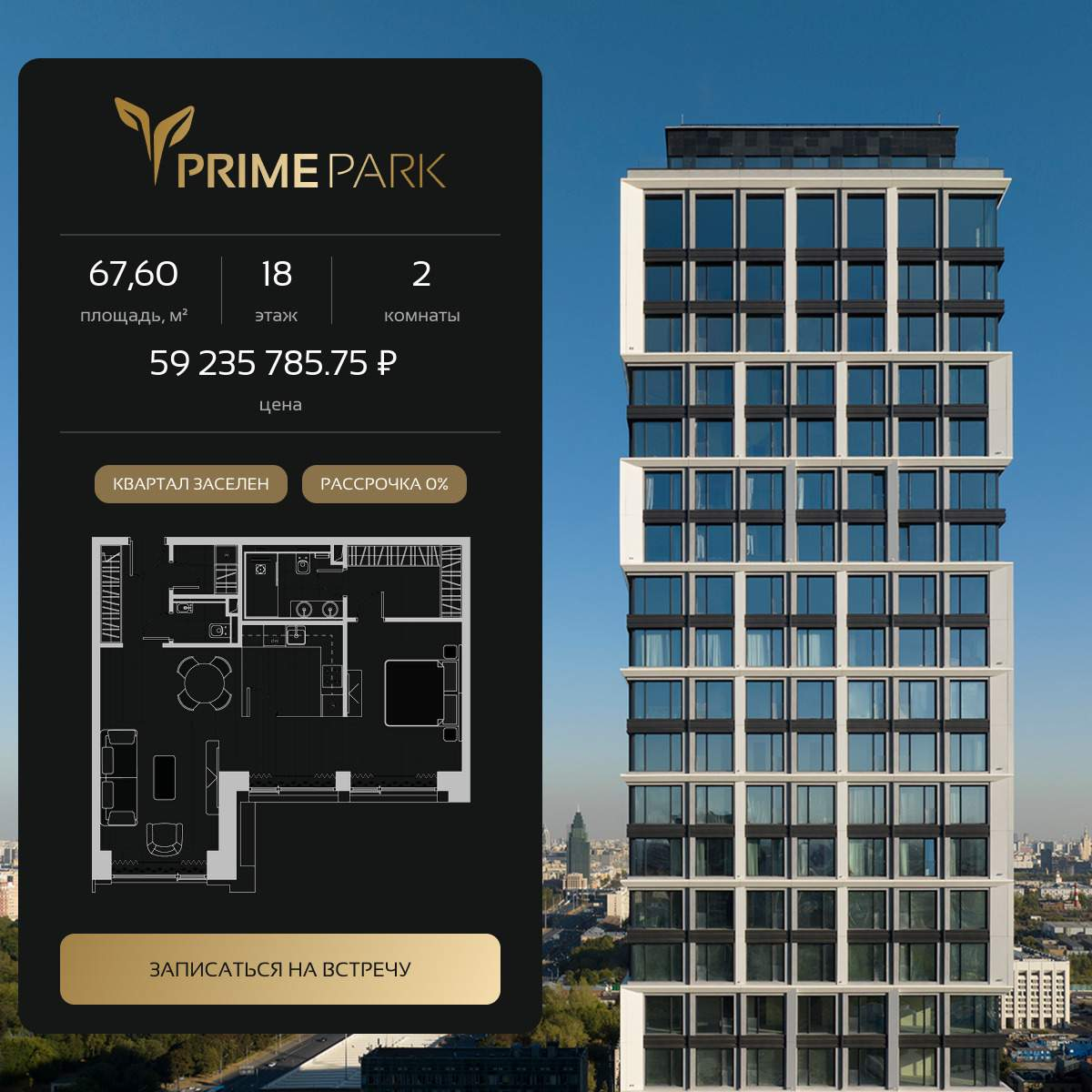 Продается 2-комн. квартира, площадью 67.6 м2 в монолитной новостройке в 12 мин. пешком от м. Динамо. Возможен вариант покупки с использованием ипотечных средств. Жилая площадь 54.08 м2, предчистовая отделка, комнаты изолированные, окна выходят во двор. Квартира располагается на 18 этаже 41-этажного дома в ЖК Прайм Парк. Застройщик - Optima Development, сдача дома - III квартал 2026 года, высота потолков 3.1 м. Дом оборудован пассажирским лифтом. Подземная парковка, парковка охраняется. Обеспечение безопасности: консьерж. Инфраструктура: школа, детский сад, детские площадки, места для отдыха, супермаркет, рестораны, фитнес-центр. Премиальный квартал PRIME PARK стал одним из знаковых жилых проектов столицы, который задал новые ориентиры на рынке недвижимости. Он неизменно занимает лидирующие позиции по продажам в своем классе, стал рекордсменом по количеству завоеванных международных и российских премий в области недвижимости, а также был назван самым благоустроенным кварталом России на XIII Российской национальной премии по ландшафтной архитектуре. Квартал стал новой доминантой Ленинградского проспекта. Архитектор Филип Болл не только разработал концепцию бескомпромиссно роскошного жилья, но и на постоянной основе осуществляет авторский надзор. Небоскребы квартала отличаются уникальным рисунком фасадов и располагаются в отдалении друг от друга, что обеспечивает постоянный поток солнечного света и восхитительные виды из каждой квартиры. В то же время геометрия PRIME PARK продумана таким образом, чтобы создать атмосферу спокойствия и тишины на территории частного парка. 5 мин. от Тверской улицы, Патриарших прудов и Белой площади; 20 мин. до аэропорта «Шереметьево» или «Москва-Сити»; 4 парка - Ходынское поле, Петровский и Чапаевский парки, Березовая роща; 4 станции метро - «ЦСКА», «Аэропорт», «Динамо» и «Петровский парк». Аккредитованные банки: Абсолют Банк, Совкомбанк, Альфа-Банк, Банк ДОМ. РФ, Промсвязьбанк, Банк ВТБ, Россельхозбанк, МКБ. Позвоните и узнайте условия покупки прямо сейчас! [#7698091#]