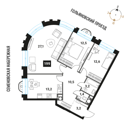 432 821 руб./м²- Москва г, Семеновская наб, д. 1