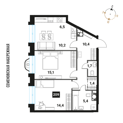 35 043 561 руб. 538 304 руб./м² Квартира 3-комн., 65 м2, 21/28 этаж, Семеновская, д. 1