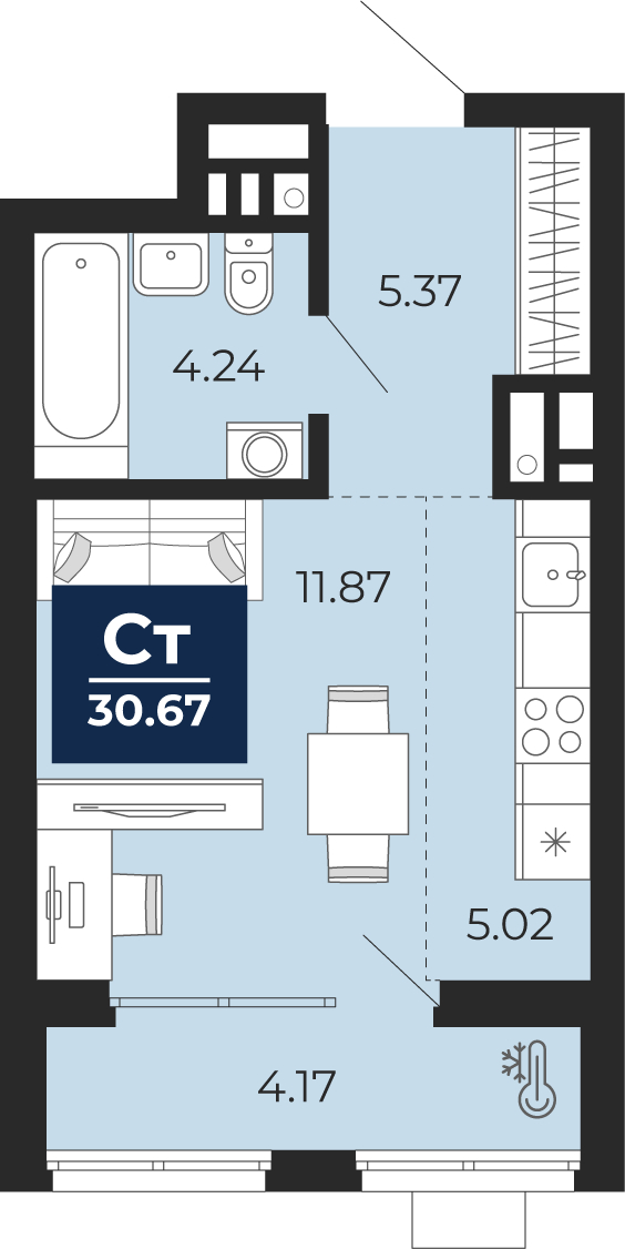 1-комн. квартира-студия с предчистовой отделкой в ЖК "Соната Парк" на 2 этаже. Общая площадь: 28.59 кв.м., площадь гостиной 16.89 кв.м., из которых 5.02 кв.м. выделено под кухонную зону. Все окна выходят на одну сторону. В квартире один балкон, один совмещенный санузел. Высота потолков 2.72 м. Дом монолитный, трехподъездный, переменной этажности, от 10 до 24 этажей. Квартира находится в 1-й секции высотой 10 этажей в корпусе 2. На этаже 5 квартир. В подъезде 1 пассажирский и 1 грузовой лифт. Окончание строительства - 4 квартал 2028 года. Оформление сделки по договору долевого участия. ЖК «Соната Парк» расположен в новом городском кластере «Аллея Романтиков» на Юго-Западе Екатеринбурга. Это район улиц Волгоградская – Советских женщин – Шаумяна – Амудсена. Аллея объединяет разные кварталы застройщиков этой территории в единое целое. Чистые линии, интеллектуальная элегантность фасадов, игра света и тени – это партитура, написанная архитектором. Благоустройство жилого комплекса – это синтез искусства и природы. Поющие музыкальные инсталляции и поэтический променад. Оркестр растений: сирень, гортензии и яблони, чья цветущая палитра сменяется в течение года. 1005 квартир: от студий 31 м² до 4-комнатных 99 м². С опциями для комфортной жизни: высокие потолки до 3 м, гардеробные даже в 1-комнатных, террасы и зимние сады. Жизнь с готовой инфраструктурой Развитая транспортная доступность и социальная среда: уже сегодня рядом с домом – детские сады, школы, парковые зоны, супермаркеты и рестораны в шаговой доступности. Технологии безопасности Для спокойствия жителей создана интеллектуальная система безопасности. Круглосуточный визуальный контроль обеспечивают профессиональная служба охраны, постоянно присутствующая на территории, и ситуационный центр. Система видеонаблюдения охватывает каждый уголок комплекса, исключая «слепые» зоны. Чёткое зонирование и навигация дополняют картину полного порядка. Дизайнерские подъезды Стилистика подъездов продолжает концепцию «Соната Парка», вдохновлённого музыкальной симфонией: сдержанный, но при этом впечатляющий дизайн соседствует с удобством и функциональностью. В подъезде вас встречает музыка, создавая особую атмосферу с первых секунд. Светлые и стильные входные группы с панорамным остеклением наполняют пространство светом, добавляя ему современной эстетики и ощущения безопасности. Аллея Романтиков Проект органично вписан в масштабный пешеходный кластер «Аллея Романтиков» — уникальное общегородское пространство, которое уже сегодня называют будущей альтернативой главным прогулочным улицам города. Это многофункциональный бульвар протяжённостью 1 километр, где всё создано для вдохновения и отдыха. Это «зелёное сердце» территории, которое объединит кварталы разных застройщиков в единую гармоничную среду. Здесь будут назначать свидания, гулять с семьёй, встречаться с друзьями и просто наслаждаться моментом. Линейка ремонтов Ремонт с капсульной меблировкой — когда всё готово к жизни. Мы соединили качественный ремонт и продуманную меблировку в одном флаконе. Словно «с иголочки», новая квартира готова и обставлена с чувством стиля и вкуса. Здесь будет всё до последней мелочи: от дивана до чайника, от освещения до текстиля. Переступите порог и моментально ощутите себя дома. Особенности: Видеонаблюдение П