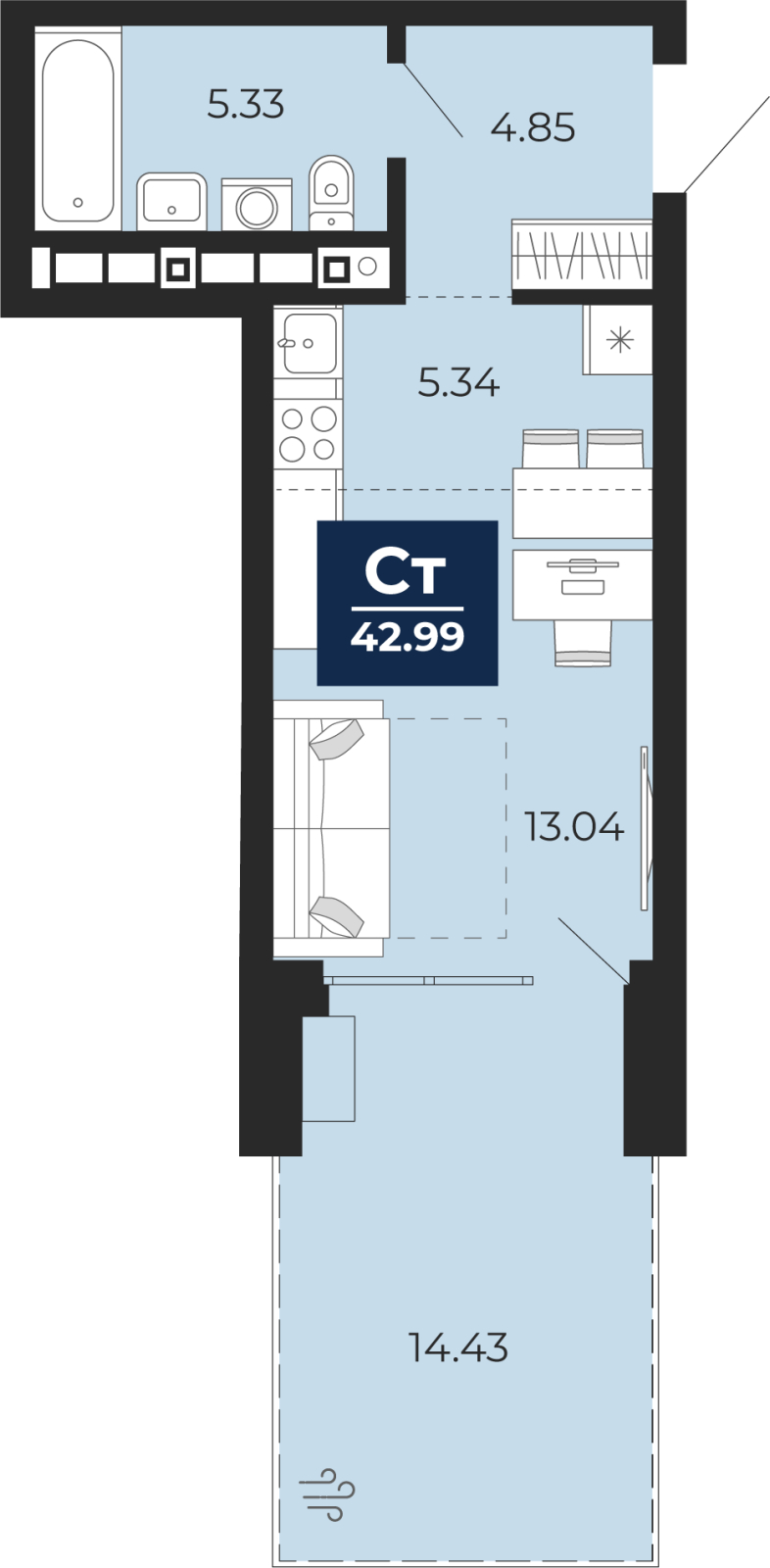 1-комн. квартира-студия от застройщика с предчистовой отделкой в ЖК "Соната Парк" на 2 этаже. Общая площадь: 32.89 кв.м., площадь гостиной 18.38 кв.м., из которых 5.34 кв.м. выделено под кухонную зону. Все окна выходят на одну сторону. В квартире один балкон, один совмещенный санузел. Наличие террасы в квартире открывает возможность для создания зон отдыха в кругу семьи и друзей. Высота потолков 2.72 м. Дом монолитный, двухподъездный, переменной этажности, от 23 до 30 этажей. Квартира находится в 1-й секции высотой 30 этажей в корпусе 1. На этаже 10 квартир. В подъезде 2 пассажирских и 2 грузовых лифта. Окончание строительства - 4 квартал 2028 года. Оформление сделки по договору долевого участия. ЖК «Соната Парк» расположен в новом городском кластере «Аллея Романтиков» на Юго-Западе Екатеринбурга. Это район улиц Волгоградская – Советских женщин – Шаумяна – Амудсена. Аллея объединяет разные кварталы застройщиков этой территории в единое целое. Чистые линии, интеллектуальная элегантность фасадов, игра света и тени – это партитура, написанная архитектором. Благоустройство жилого комплекса – это синтез искусства и природы. Поющие музыкальные инсталляции и поэтический променад. Оркестр растений: сирень, гортензии и яблони, чья цветущая палитра сменяется в течение года. 1005 квартир: от студий 31 м² до 4-комнатных 99 м². С опциями для комфортной жизни: высокие потолки до 3 м, гардеробные даже в 1-комнатных, террасы и зимние сады. Жизнь с готовой инфраструктурой Развитая транспортная доступность и социальная среда: уже сегодня рядом с домом – детские сады, школы, парковые зоны, супермаркеты и рестораны в шаговой доступности. Технологии безопасности Для спокойствия жителей создана интеллектуальная система безопасности. Круглосуточный визуальный контроль обеспечивают профессиональная служба охраны, постоянно присутствующая на территории, и ситуационный центр. Система видеонаблюдения охватывает каждый уголок комплекса, исключая «слепые» зоны. Чёткое зонирование и навигация дополняют картину полного порядка. Дизайнерские подъезды Стилистика подъездов продолжает концепцию «Соната Парка», вдохновлённого музыкальной симфонией: сдержанный, но при этом впечатляющий дизайн соседствует с удобством и функциональностью. В подъезде вас встречает музыка, создавая особую атмосферу с первых секунд. Светлые и стильные входные группы с панорамным остеклением наполняют пространство светом, добавляя ему современной эстетики и ощущения безопасности. Аллея Романтиков Проект органично вписан в масштабный пешеходный кластер «Аллея Романтиков» — уникальное общегородское пространство, которое уже сегодня называют будущей альтернативой главным прогулочным улицам города. Это многофункциональный бульвар протяжённостью 1 километр, где всё создано для вдохновения и отдыха. Это «зелёное сердце» территории, которое объединит кварталы разных застройщиков в единую гармоничную среду. Здесь будут назначать свидания, гулять с семьёй, встречаться с друзьями и просто наслаждаться моментом. Линейка ремонтов Ремонт с капсульной меблировкой — когда всё готово к жизни. Мы соединили качественный ремонт и продуманную меблировку в одном флаконе. Словно «с иголочки», новая квартира готова и обставлена с чувством стиля и вкуса. Здесь будет всё до последней мелочи: от дивана до чай