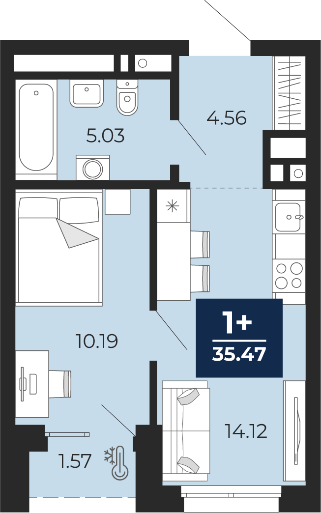 • Общая площадь 34.69 м²