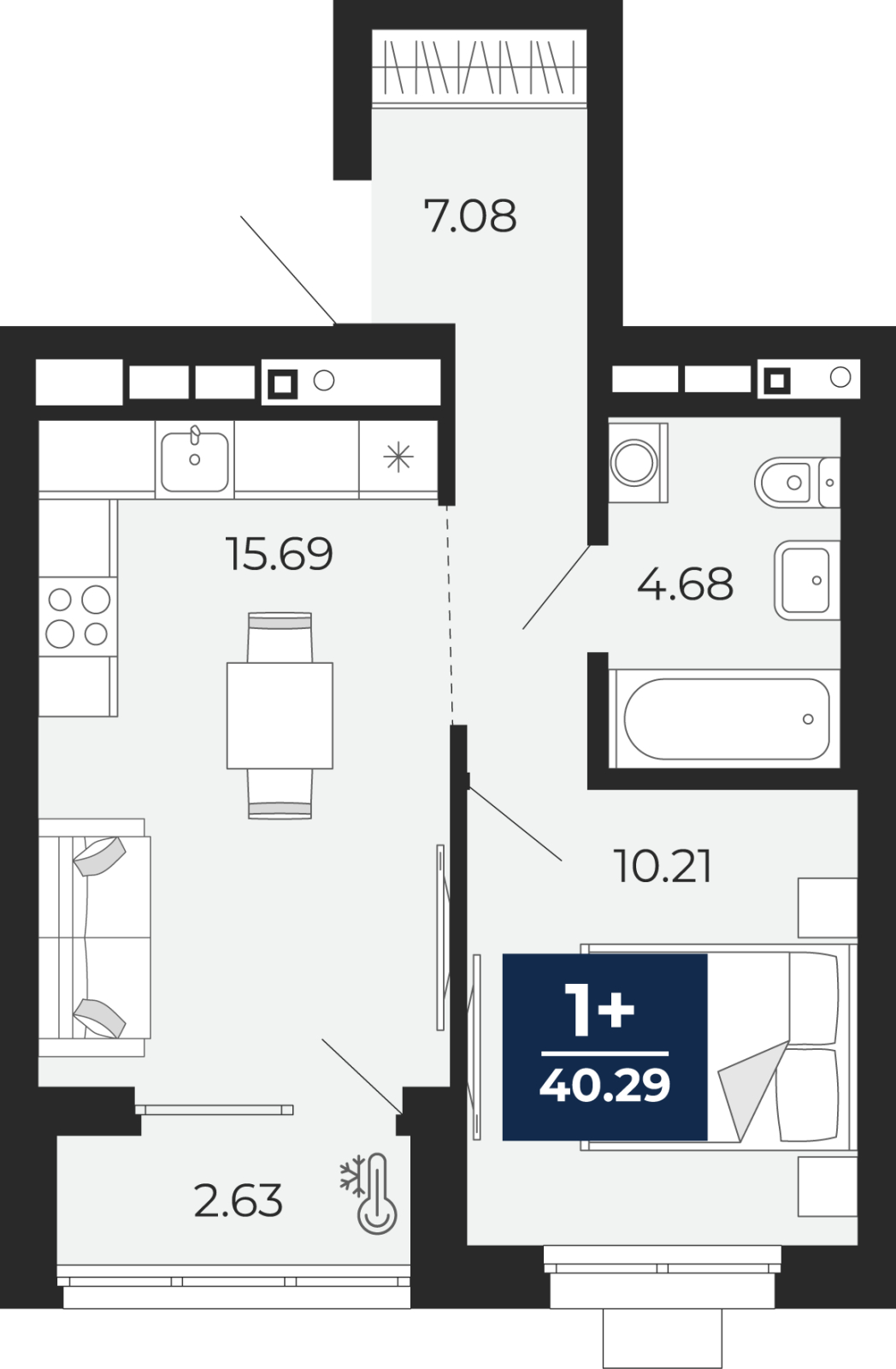 • Площадь кухни 15.69 м²