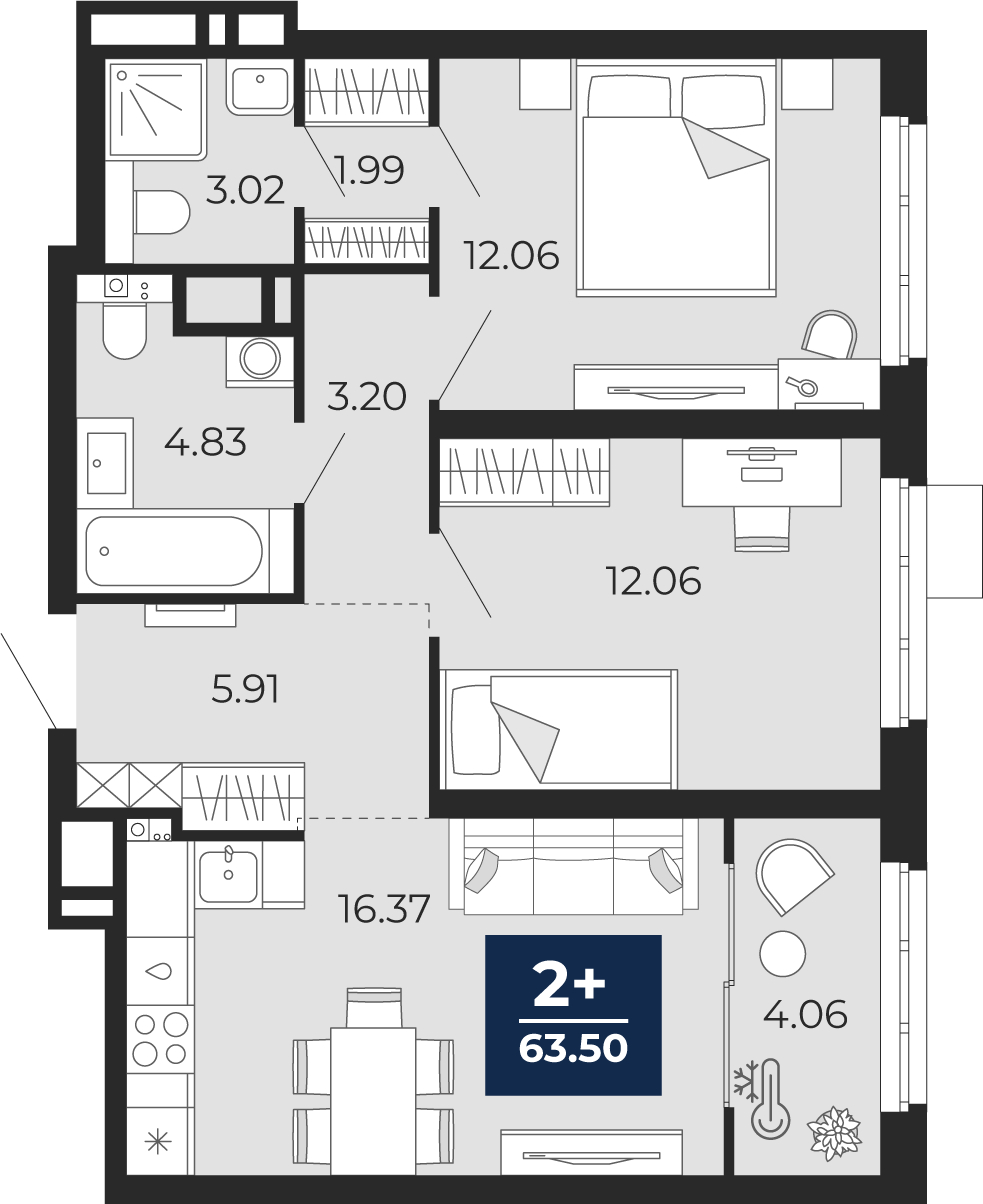 Продается двухкомнатная квартира с предчистовой отделкой в ЖК "Прео" на 12 этаже. Общая площадь: 61.47 кв.м., жилая: 24.12 кв.м., площадь просторной кухни-столовой: 16.37 кв.м. Комнаты изолированные, все окна выходят на одну сторону. В квартире одна лоджия, два совмещенных санузла. Высота потолков 2.7 м. Дом монолитный, двухподъездный, переменной этажности, от 12 до 20 этажей. Квартира находится во 2-й секции высотой 20 этажей в корпусе 214. На этаже 8 квартир. В подъезде 1 пассажирский и 1 грузовой лифт. Окончание строительства - 4 квартал 2027 года. Оформление сделки по договору долевого участия. Преображенский — один из самых привлекательных районов для жизни! Это полностью самостоятельный жилой район с точки зрения инфраструктуры. Преображенский находится между Московским и Червишевским трактами в квартале улиц Закалужская — Вьюжная — Александра Протозанова. Не нужно ждать, когда появится инфраструктура — переезжайте на всё готовое. Вблизи расположены действующие школа и детский сад. В этом году откроется еще один сад, а в следующем году — школа. По соседству с Преображенским запланировано строительство городского парка «Комарово» площадью 38 гектар. За 10 минут можно доехать на автомобиле до крупных ТРЦ: «Лента», «Кристалл», «Леруа Мерлен», «Метро» и «Ашан». С 2018 года в районе открыт Соседский центр — пространство, созданное для формирования добрососедской среды, совместного досуга, общения и реализации соседских инициатив. Здесь проходят встречи соседей, а также сами жители района организовывают мероприятия. Организатором такого события может стать любой желающий. В квартирах выполнена качественная предчистовая отделка. Гладкие стены с финишным выравниванием по маякам. Ровный потолок для установки натяжного потолка. Установлены пятикамерные окна с двойным стеклопакетом (3 стекла). Дизайнерские холлы с видеонаблюдением, безбарьерным и прозрачным входом – всегда светло и спокойно. На первом этаже есть просторные колясочные, где все жители могут оставлять свои коляски и велосипеды. В Преображенском есть всё, что нужно для активного отдыха и занятий спортом. Мы сделали большое футбольное поле с безопасным покрытием. Также установили хоккейный корт, который оборудован по всем необходимым стандартам. Во дворах можно делать упражнения на специальных площадках с турниками. Весь район мы обустроили велодорожками, которые связаны в единый маршрут. У нас есть сухие фонтаны, бьющие из земли, деревья, веревки, сетки, скалодром, газон, песок и резинка — осталось просто дать своему ребенку право на свободную игру. По-настоящему хорошие дворы — это те, которые дети предпочитают соцсетям и телевизору. Аккредитация в банках: ПАО «Банк Уралсиб», ОАО «Альфа-Банк», «Сбербанк России», ПАО «Газпромбанк», ПАО Банк «ВТБ» и других. (AQID02532814)