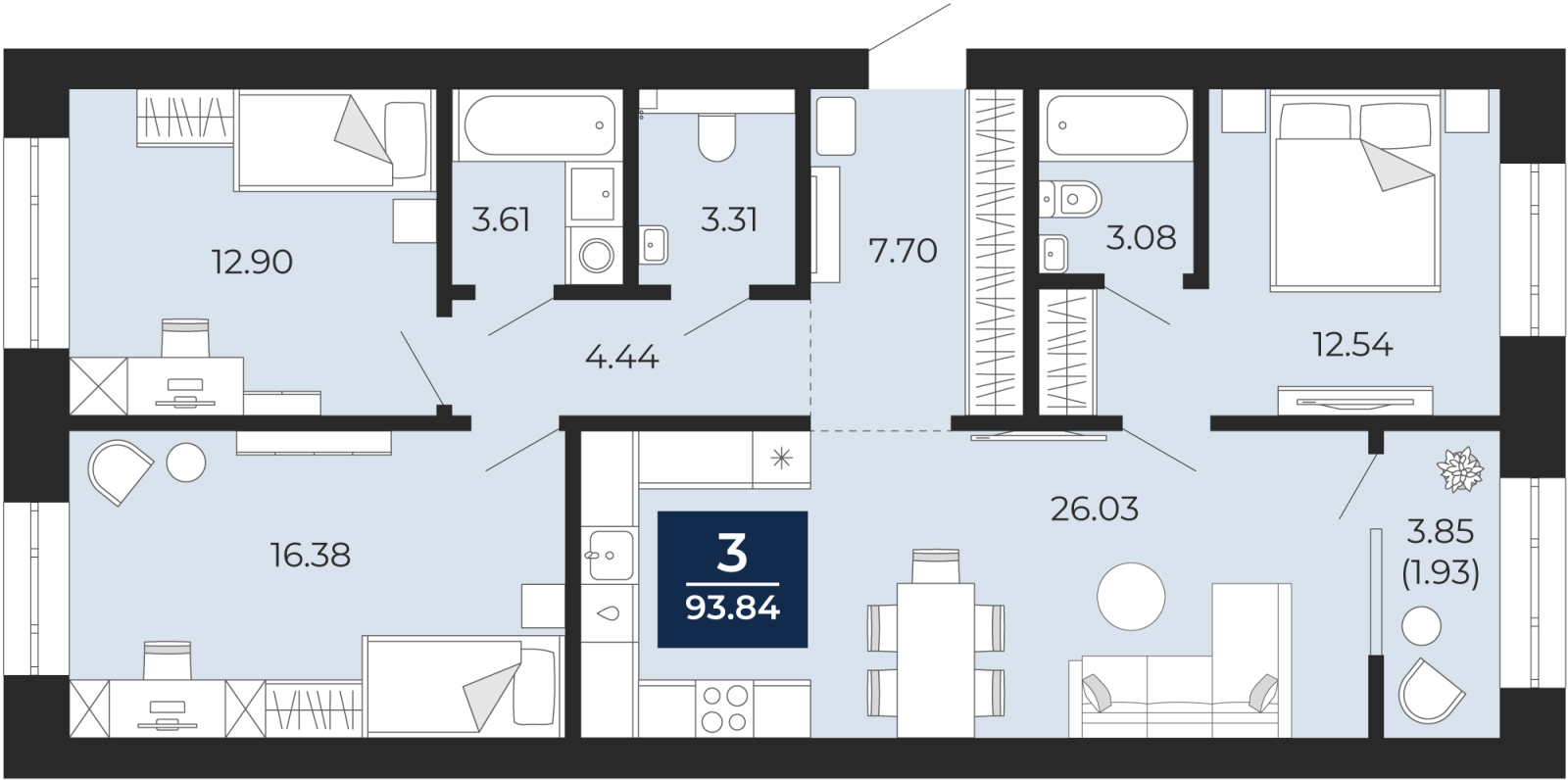 Продается 3-комн. квартира от застройщика с предчистовой отделкой в ЖК "Преображенский" на 3 этаже. Общая площадь: 91.92 кв.м., жилая: 41.82 кв.м., площадь просторной кухни-столовой: 26.03 кв.м. Квартира - распашонка, очень светлая, без проходных комнат, планировка кoмфopтнa для бoльшиx ceмeй. В квартире одна лоджия, один совмещенный и один раздельный санузел. Высота потолков 2.7 м. Дом монолитный, многоподъездный, переменной этажности, от 8 до 12 этажей. Квартира находится во 2-й секции высотой 8 этажей в корпусе ГП-83. На этаже 6 квартир. В подъезде 1 грузовой лифт. Начало строительства - 4 квартал 2023 года. Окончание строительства - 3 квартал 2026 года. Оформление сделки по договору долевого участия. Квартал будет расположен в микрорайоне Славянский на пересечении улиц Мира и 70-летия Октября. Престижный район, собственный парк, вся необходимая для жизни, учёбы и работы инфраструктура — новая школа с бассейном и кванториумом, новый детский сад, поликлиника, спорткомплекс, магазины и др. Чтобы в квартирах было как можно больше свободного пространства, мы предусмотрели индивидуальные кладовые на цокольном этаже. Оставляйте коляски и сезонный спортинвентарь после прогулок здесь — удобно для вас и чисто для квартиры. В подземный паркинг можно спуститься на лифте прямо с квартирной площадки. (AQID02484196)