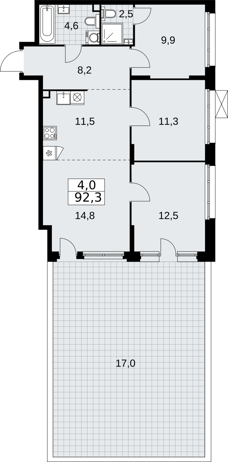 - Общая площадь 92 м²