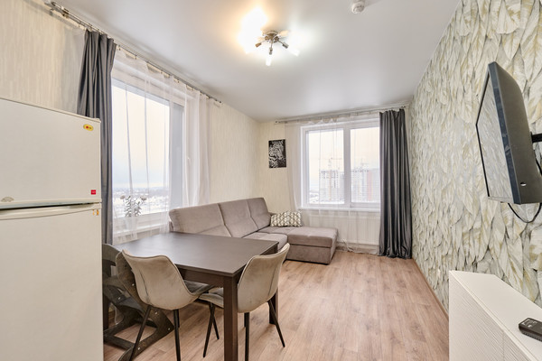 Квартира в жилом комплексе Погода -это отдельный мир добра, улыбок и семейного счастья! Этот комплекс привлекает семейной инфраструктурой и зеленой территорией.Жители комплекса хвалят зеленые доры как оазис., также близость к лесному массиву и лыжной базе для активного отдыха.На территория жилищного комплекса - школа с бассейном и стадионом, детский сад, множество сетевых магазинов, кафе, пункты выдачи заказов.