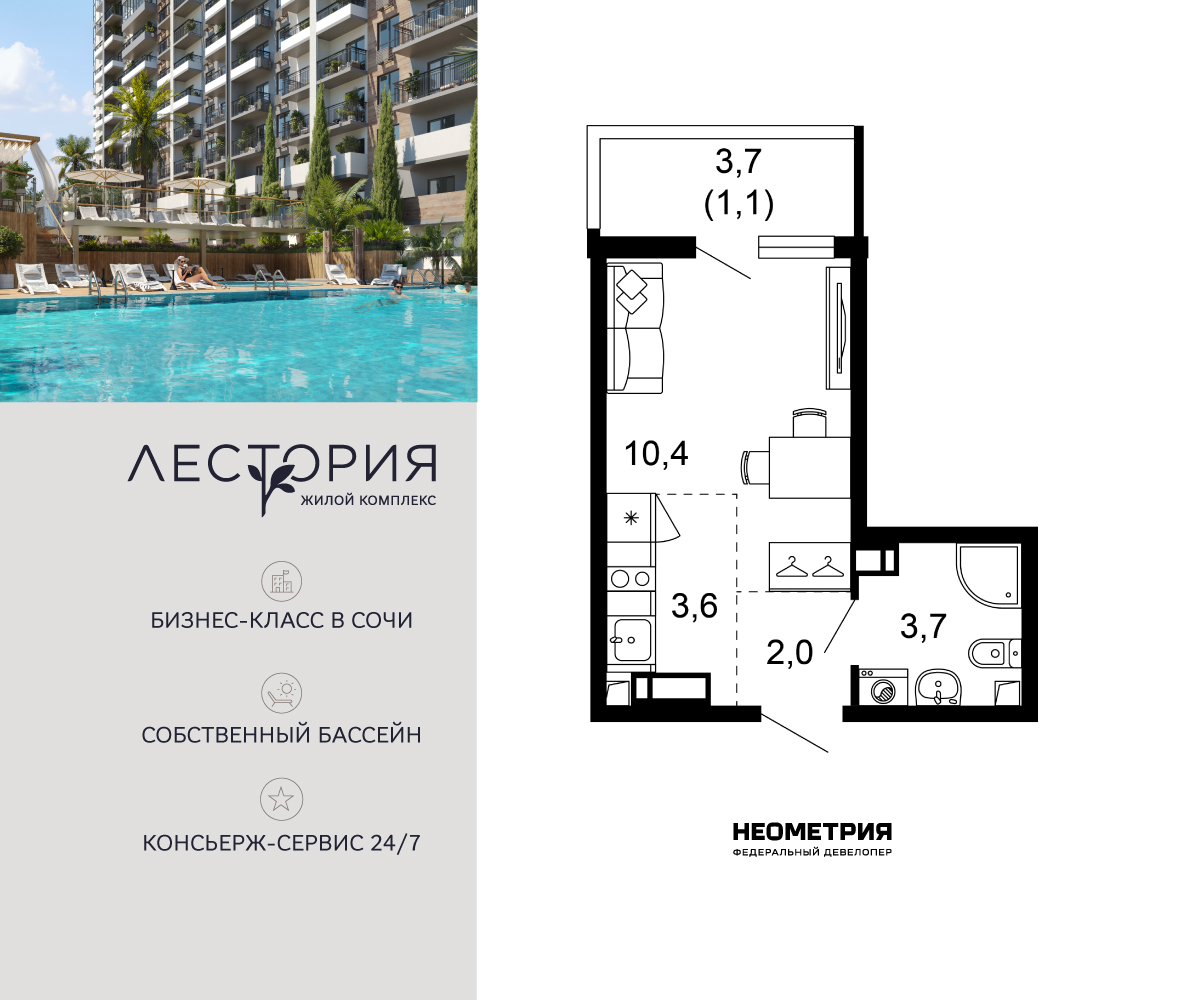 Продается квартира в жилом комплексе бизнес-класса «Лестория». В составе ЖК предусмотрена собственная аквазона площадью 473 квадратных метра с двумя подогреваемыми бассейнами, что соответствуют стандартам бизнес-класса. Аквазона объединяет взрослый и детский бассейны. В welcome-zone к услугам посетителей шезлонги и все необходимые принадлежности. Раздевалки с душевыми комнатами, инфракрасная сауна — здесь все предусмотрено для комфортного отдыха и полного расслабления. Для водного комплекса продуман отдельный вход, оборудованный системой контроля и управления доступом (СКУД). Аквазона – только часть уникальной инфраструктуры «Лестории», которая включает в себя также благоустроенную территорию с пятьюдесятью функциональными зонами для прогулок, отдыха и занятий спортом, видовые террасы на крышах для отдыха, работы и встреч с друзьями, а также пространство набережной Кудепсты с шезлонгами и перголами. Жилой комплекс «Лестория» состоит из шести домов высотностью от 15 до 17 этажей, окружённых зеленым массивом национального парка. На придомовой территории для жителей предусмотрены закрытые дворы с круглосуточным видеонаблюдением, активити-центр для детей и подростков, тихие зоны для отдыха и медитации. На крышах домов будут созданы зеленые террасы для наслаждения прекрасными видами на море и горы. В проекте предусмотрены разные варианты отделки квартир под потребности покупателей. Тем, кто хочет воплотить в жизнь собственные интерьерные задумки, подойдут квартиры без ремонта. Для комфортной жизни и отдыха в комплексе будет работать круглосуточный консьерж-сервис уровня 5*, который с легкостью закроет все ежедневные потребности: от заказа продуктов и встречи гостей в аэропорту до выгула и дрессировки питомца. К услугам жителей ЖК «Лестория» — собственная управляющая компания, для инвесторов предоставляются услуги доверительного управления. (AQID02539371)