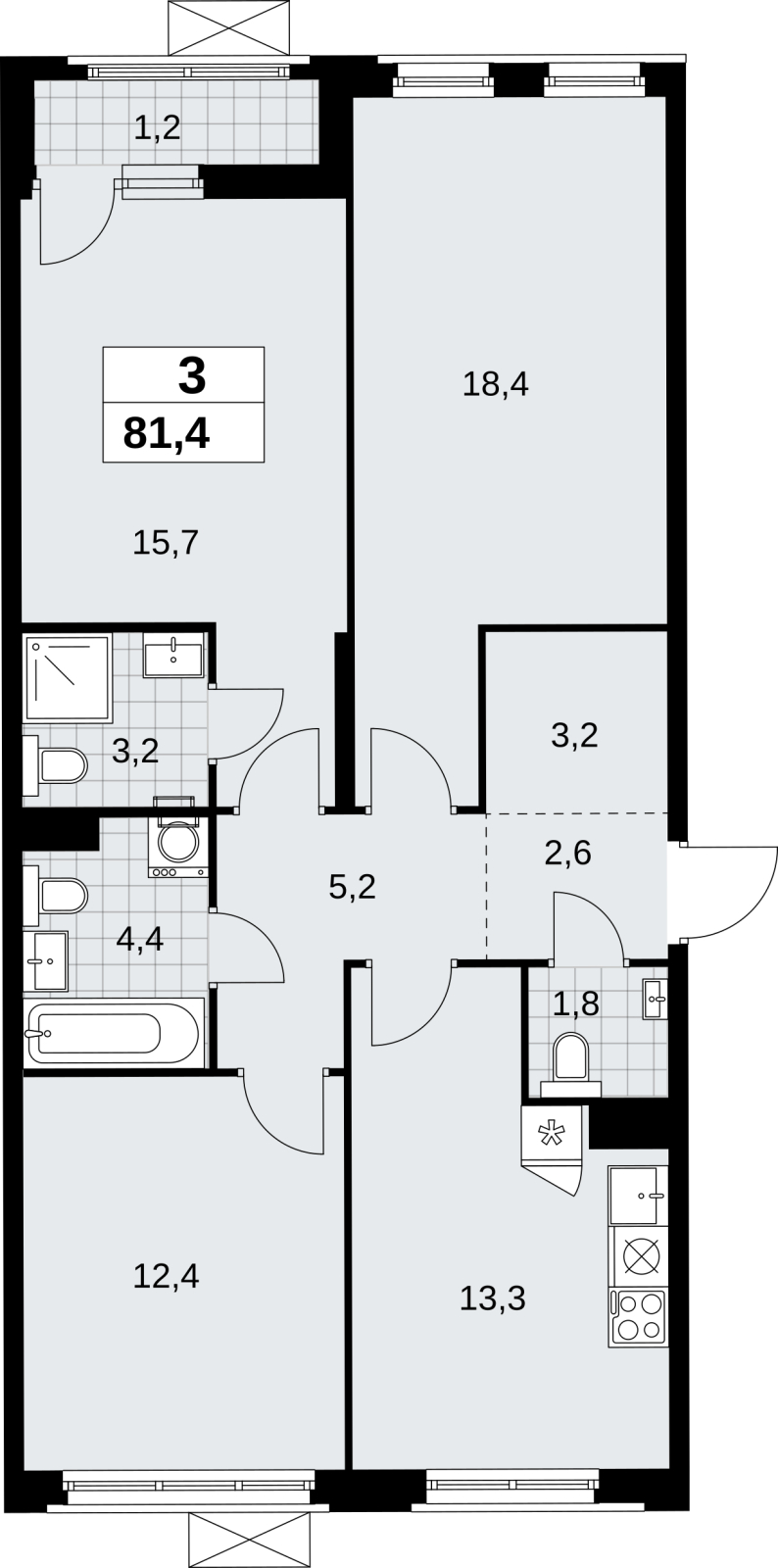 - Общая площадь 81.4 м²