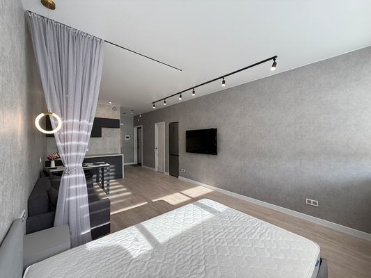 Квартира светлая, стильная и уютная. Современная и функциональная планировка, задействован каждый сантиметр полезной площади: просторная кухня-гостиная, большая вместительная гардеробная, практичный саузел с ванной и тропическим душем, дизайнерская расстановка света.