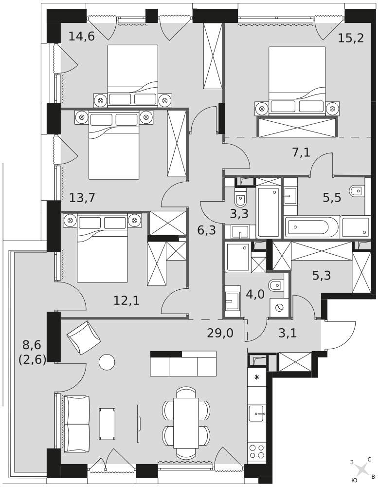 Продается 5-комн. квартира, площадью 122.3 м2. Жилая площадь 55.6 м2, ремонта нет, окна выходят на улицу. Квартира располагается на 13 этаже 17-этажного монолитного дома. Дом оборудован пассажирским лифтом, есть мусоропровод, закрытая территория, парковка охраняется. [#8069890#]